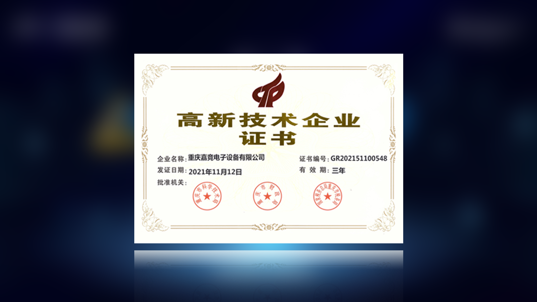 重慶嘉競電子設備有限公司獲高新技術企業(yè)證書